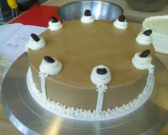 "mod" = mocha butter cream icing + mocha pastry cream fillingI'm not liking how this one turned out... The design on paper looked better :(